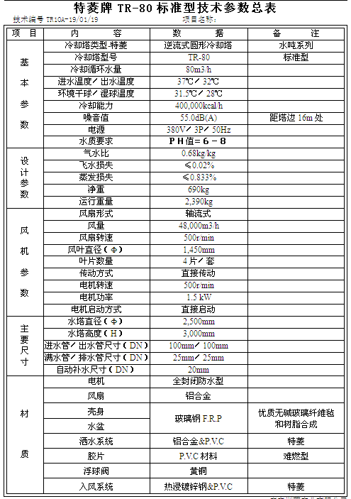 特菱TR系列80噸冷卻塔的技術特點: